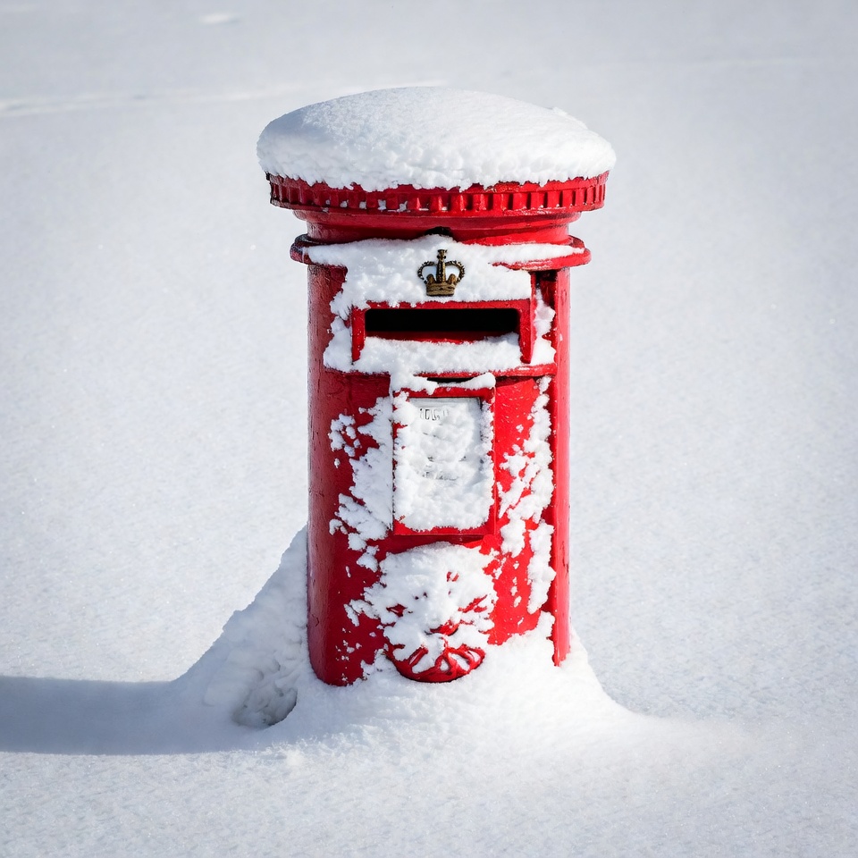 Red Post Box Covered in Snow