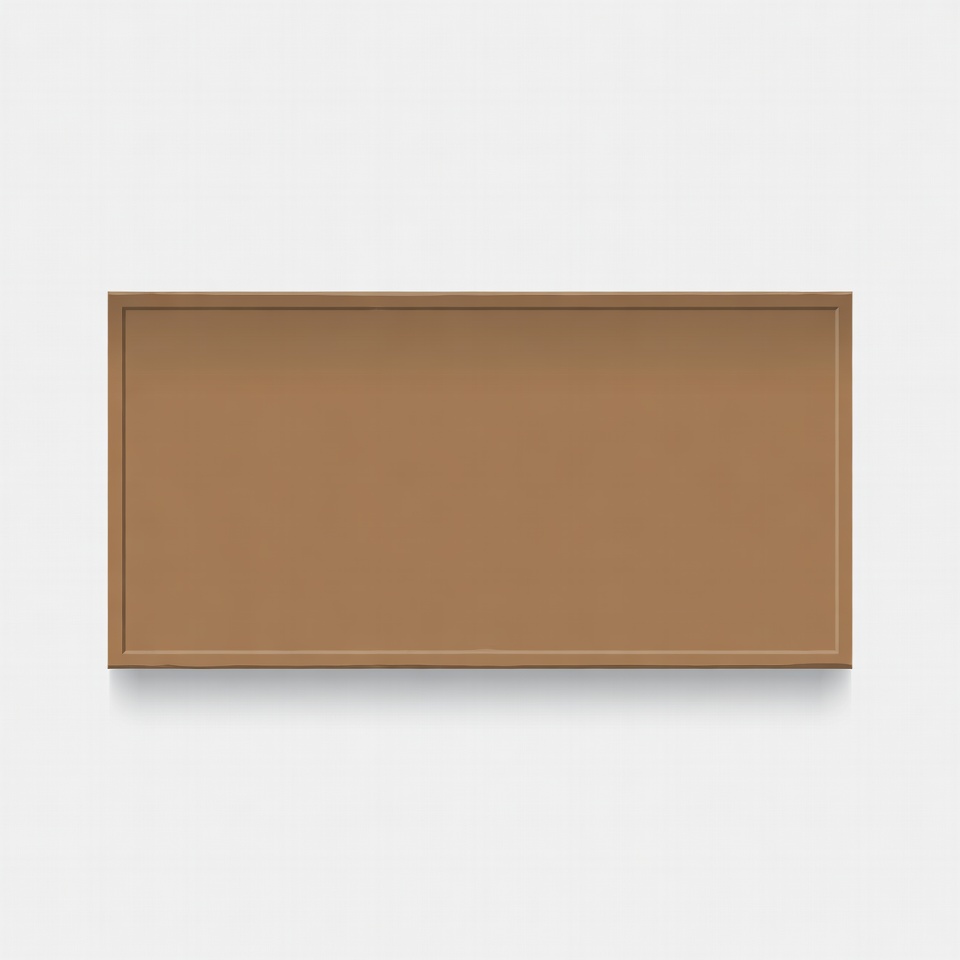 A rectangular brown bulletin board with a thin frame sits on a white background. The board surface is completely blank and smooth. It is isolated for easy use in designs.