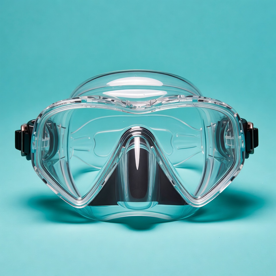 adjustable straps, black trim, blue, blue background, clear, clear mask, diving equipment, goggles, isolated, mask, ocean gear, scuba diving, scuba mask, silicone skirt, snorkel mask, snorkeling, snorkeling gear, snorkeling mask, swim goggles, transparent lenses, underwater gear, water sports, diving mask