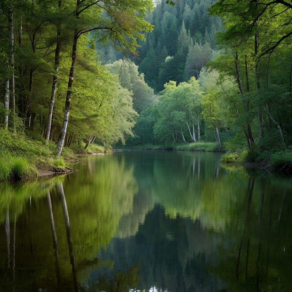 Serene Forest River with Reflections