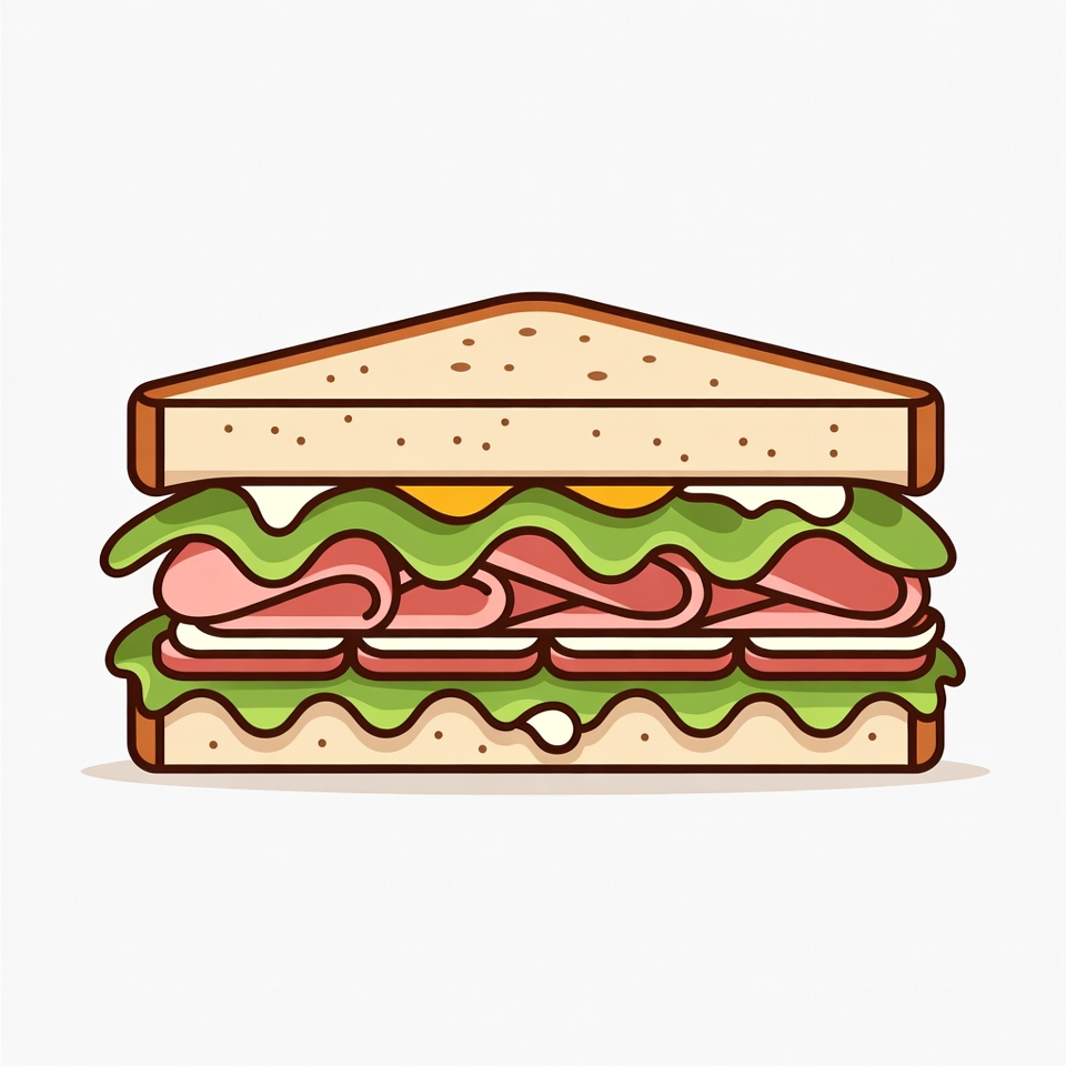 bread, cartoon, cheese, cheese sandwich, clipart, delicious, drawing, food, fresh, ham, ham sandwich, illustration, isolated background, layered sandwich, lettuce, lunch, mayonnaise, meal, stacked sandwich, vector art, sandwich