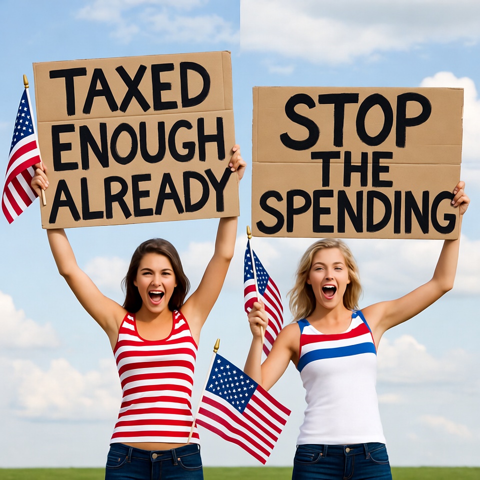 Women Protesting Taxes Spending Flags