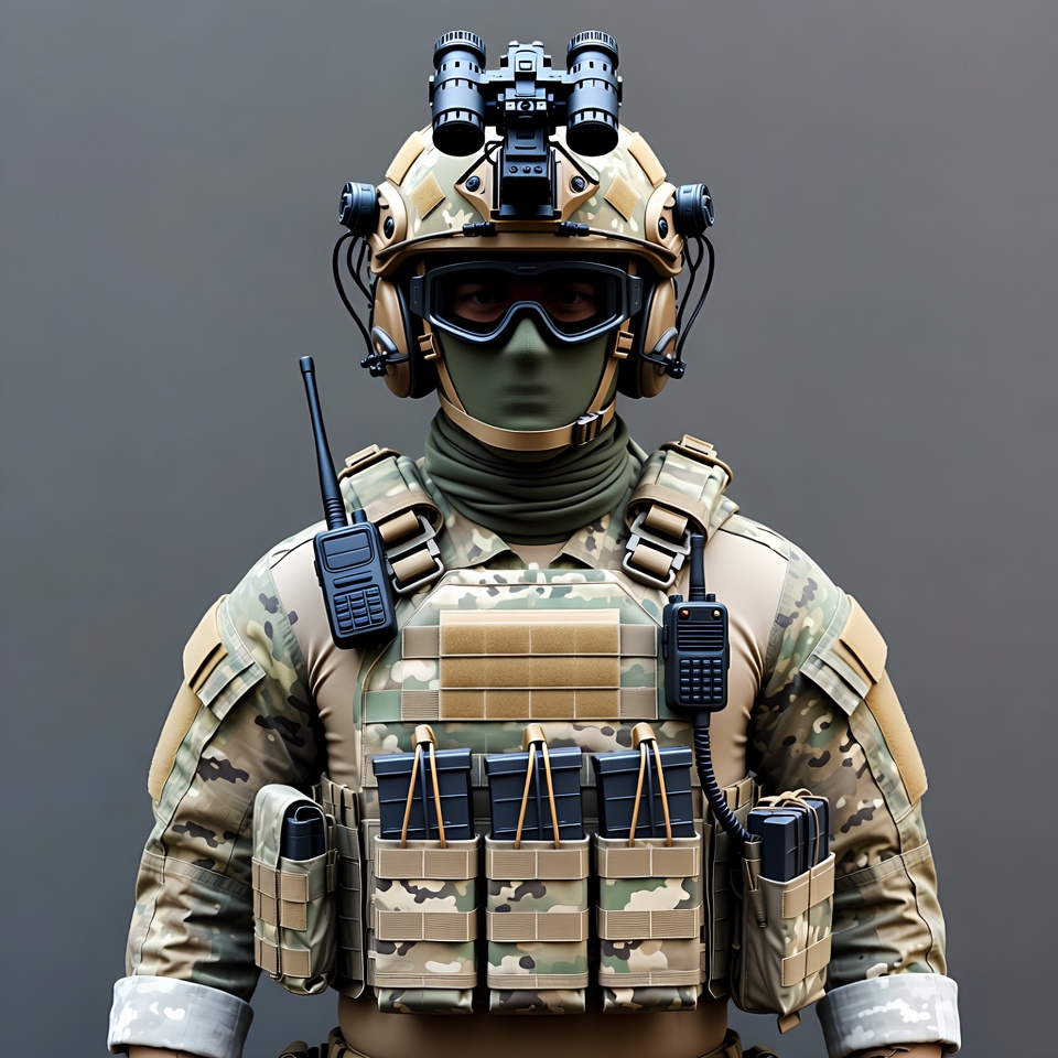Soldier in tactical gear with night vision