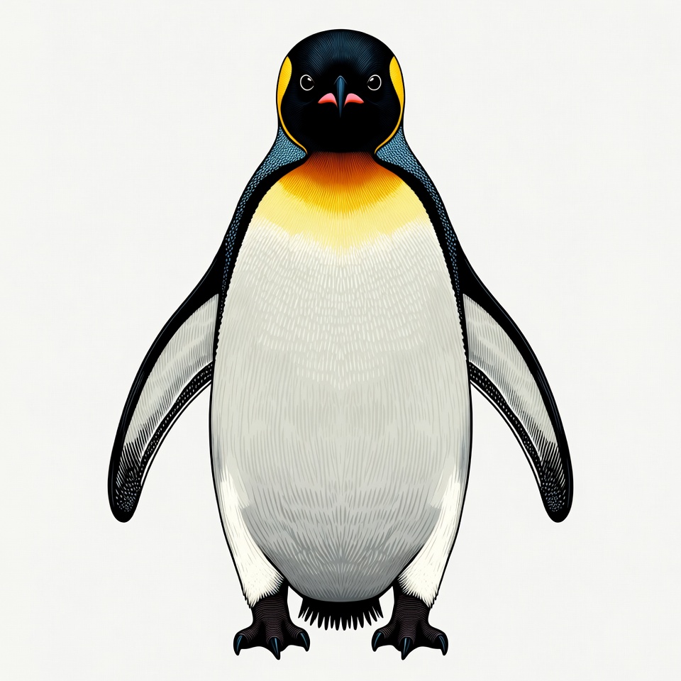 animal, antarctic bird, bird, black feathers, blue sides, clipart, feet, illustration, isolated background, penguin, vector art, white belly, wildlife, wings, yellow crown, emperor penguin
