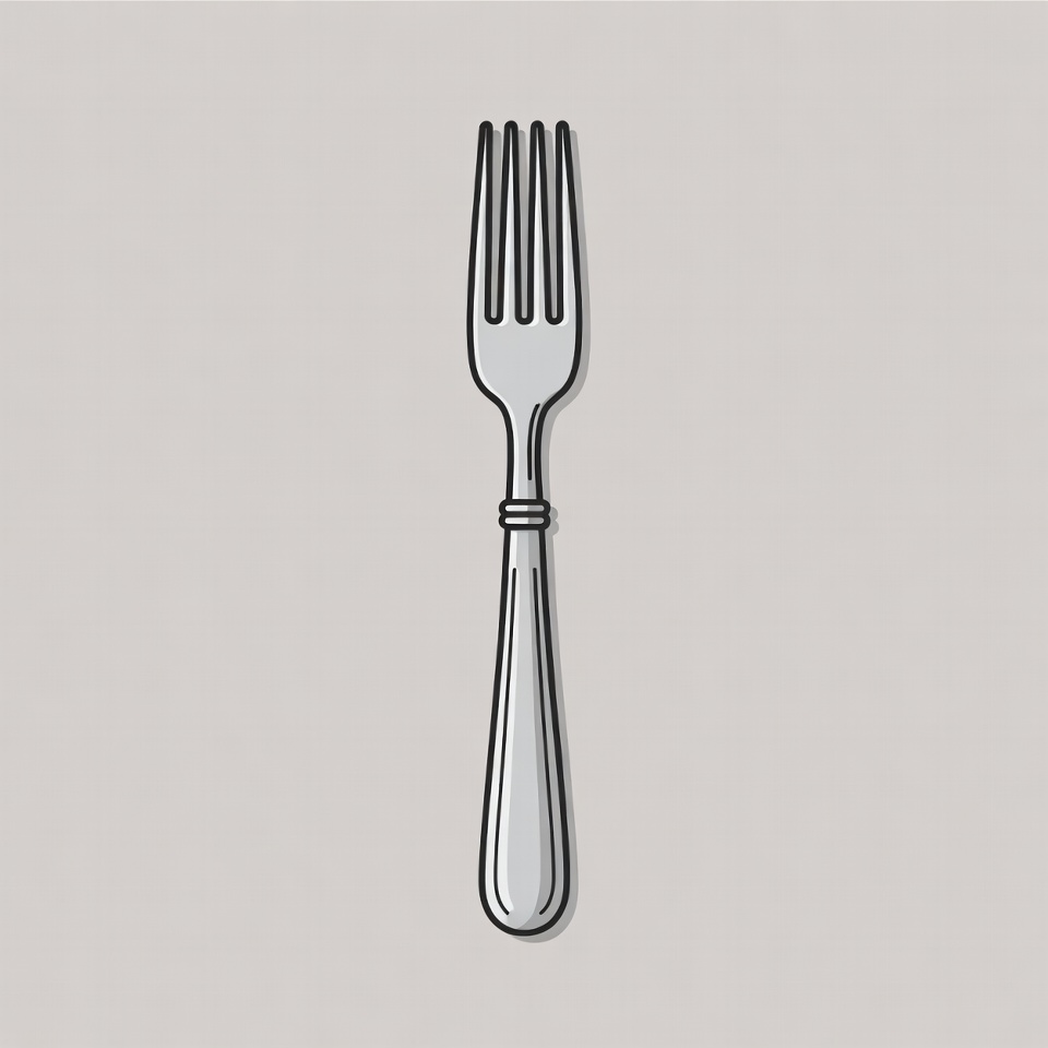 clipart, cutlery, dinner fork, eating utensil, flat design, gray background, illustration, isolated background, kitchen utensil, line art, silver fork, simple icon, tableware, vector, fork