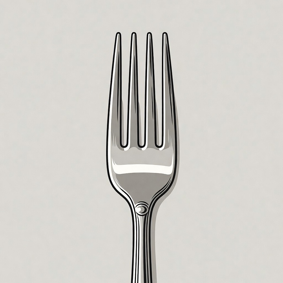 clipart, cutlery, dinner fork, eating utensil, gray background, handle, isolated background, metallic, shiny, silver fork, tableware, tines, vector illustration, fork