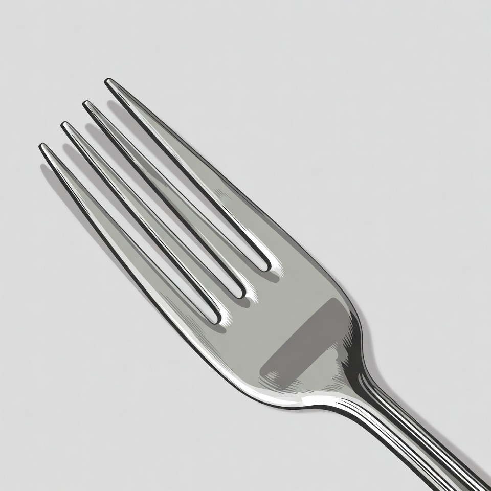 clipart, cutlery, eating utensil, four tines, handle, illustration, isolated, kitchen utensil, metal fork, metallic, shiny, silver fork, tableware, white background, fork