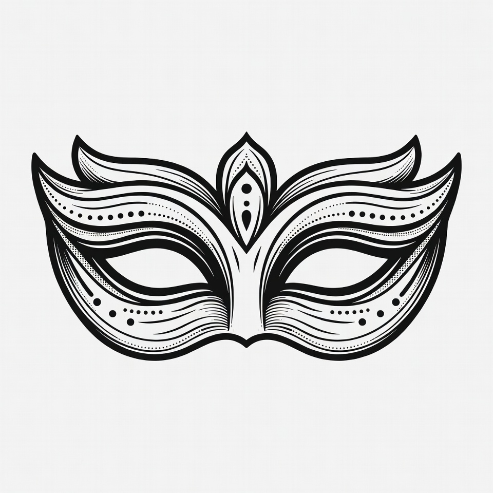artistic mask, black and white, carnival mask, clipart, costume accessory, decorative mask, eye mask, fancy mask, floral design, illustration, intricate patterns, isolated background, line art, masquerade mask, ornate mask, party mask, vector art, white background, mask