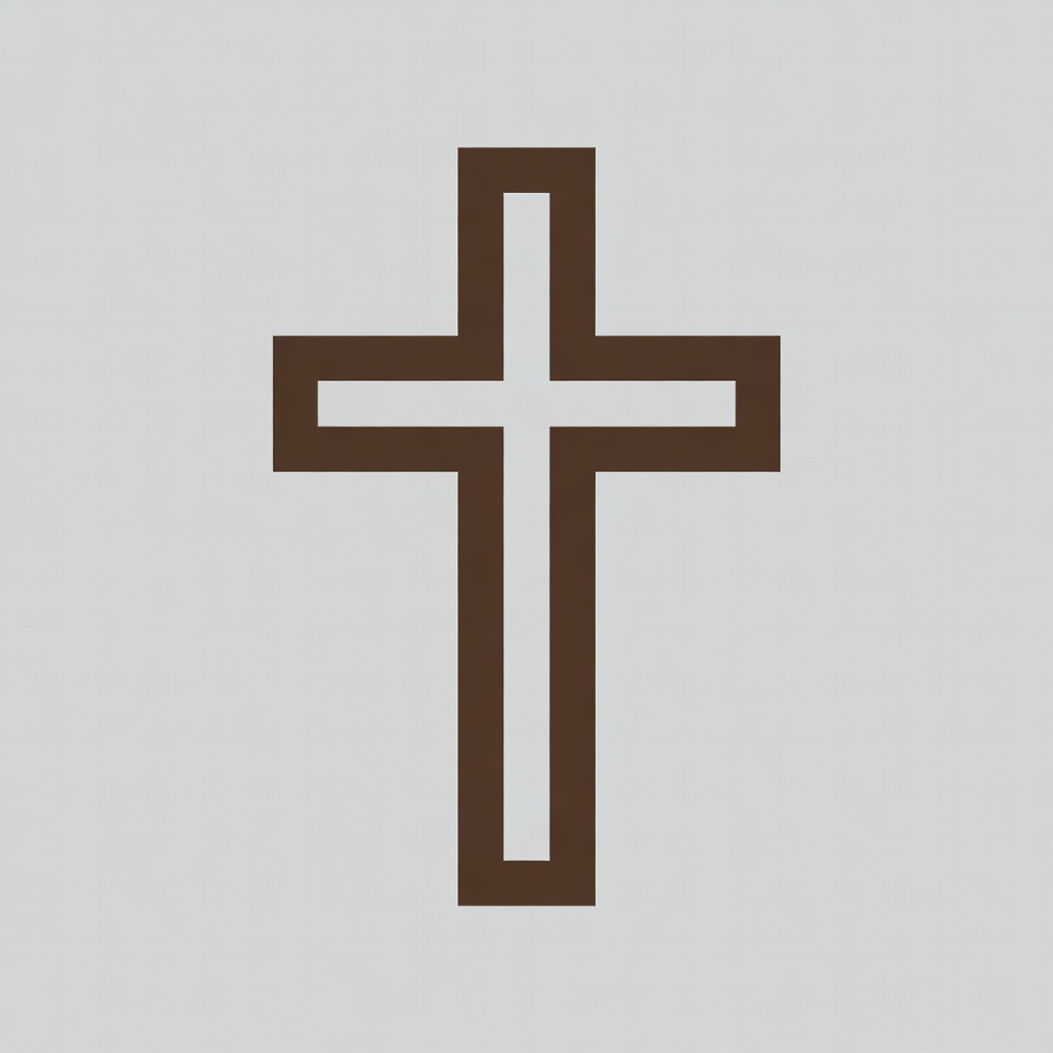 A simple brown cross icon features thick outlines on a light gray background. The design is minimalist with clean lines forming the vertical and horizontal bars. It appears as a vector-style graphic suitable for religious or symbolic use.