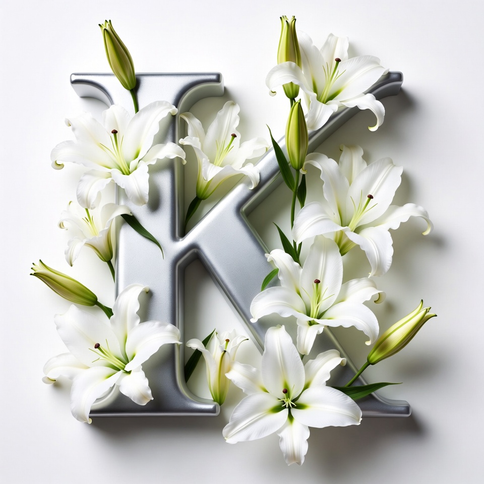Lilies Forming Silver Letter K