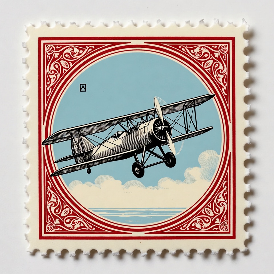 Vintage Biplane on Stamp