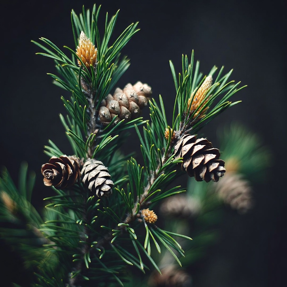 botany, brown cones, closeup, conifer, dark background, evergreen tree, fir branch, foliage, forest, fresh pine, green needles, macro, natural, nature, needles, outdoor, pine cones, pine tree, plant, seed cones, woody, pine branch
