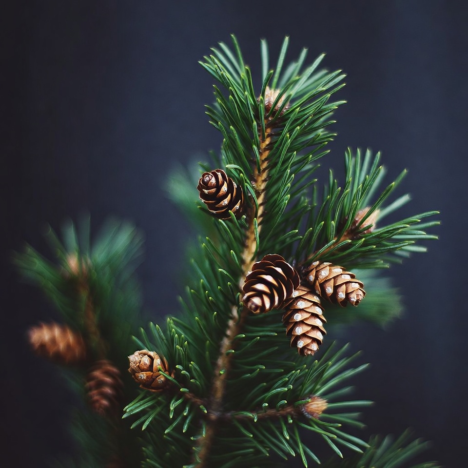 Christmas pine, botanical, brown cones, close-up, cones, coniferous branch, dark background, evergreen tree, fir branch, forest plant, green needles, holiday decor, macro photography, natural texture, nature, needles, pine cones, plant detail, spruce branch, woody plant, pine branch