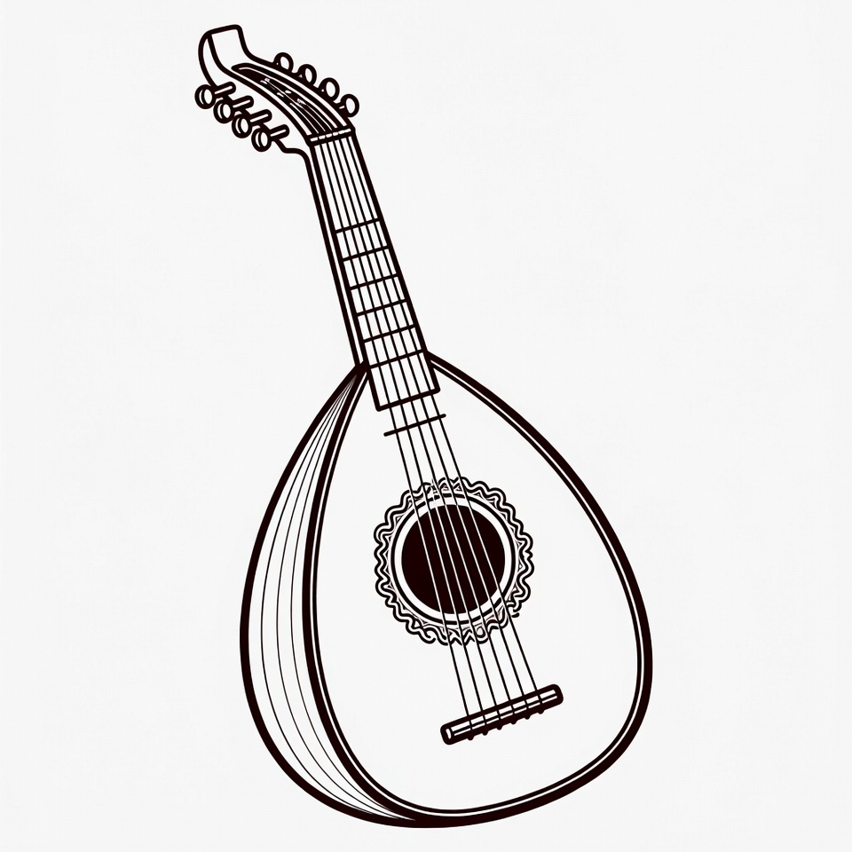 Black Outline Lute Illustration