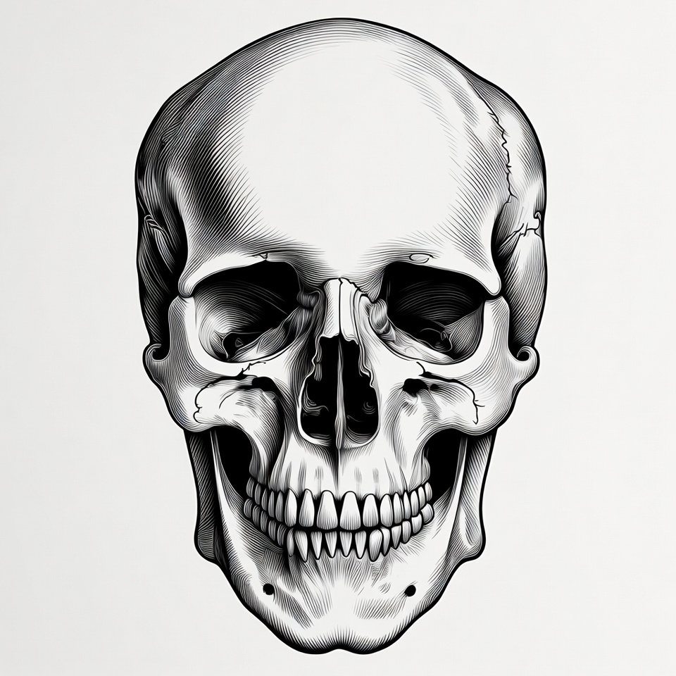 Detailed black and white skull illustration