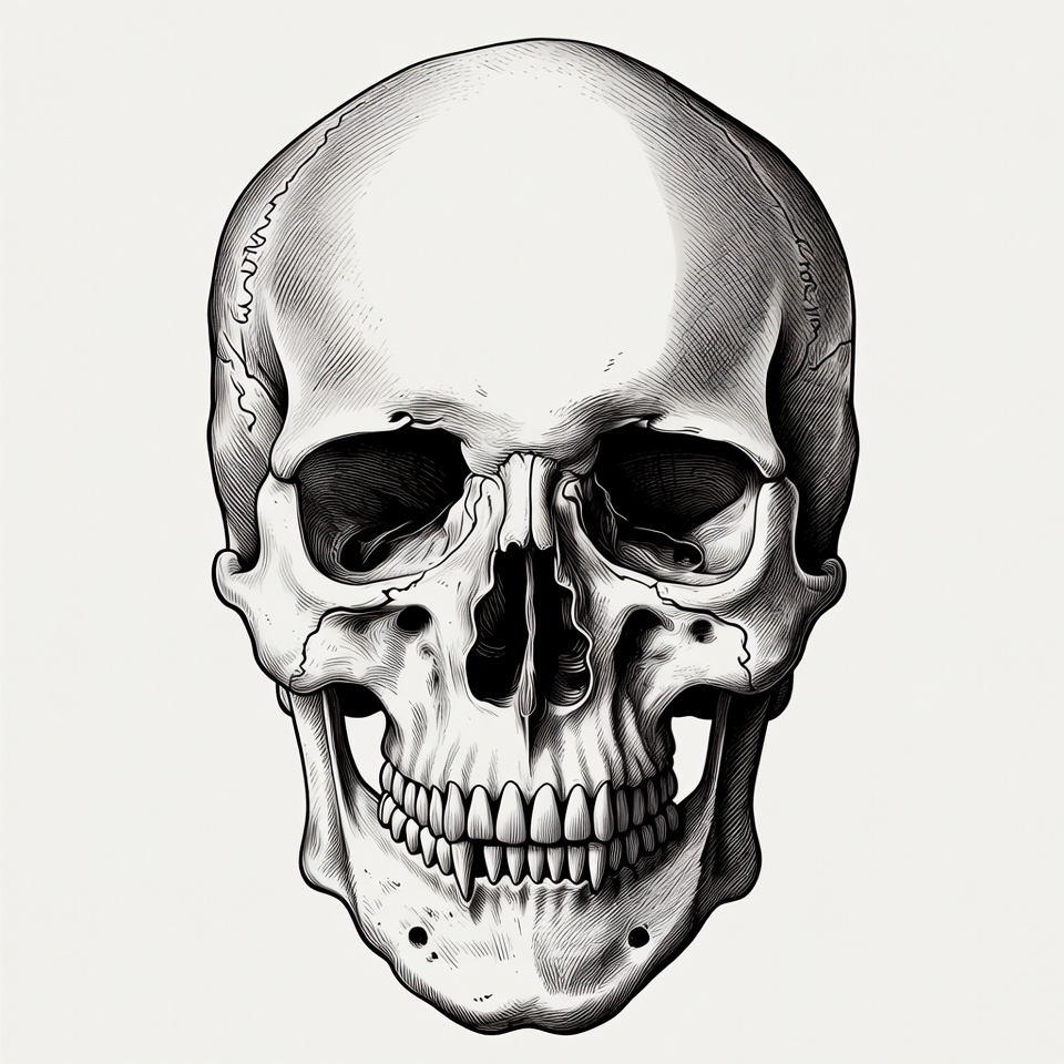 Halloween, anatomy, black and white, bones, cranium, detailed, drawing, eye sockets, forensic, human skull, illustration, isolated background, jawbone, medical, nasal cavity, realistic, teeth, skull