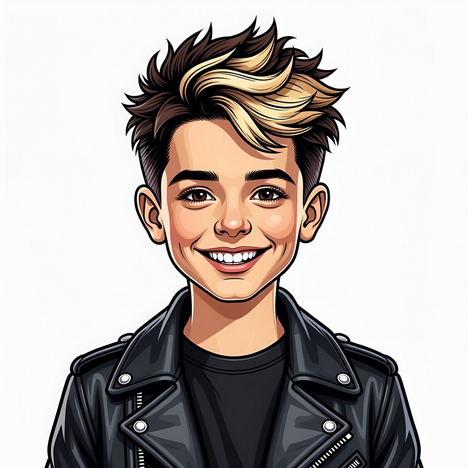Cartoon boy with highlights smiling in leather jacket