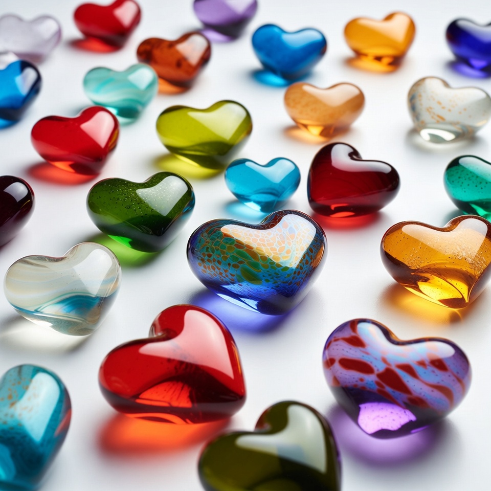 Colorful Glass Heart Shapes