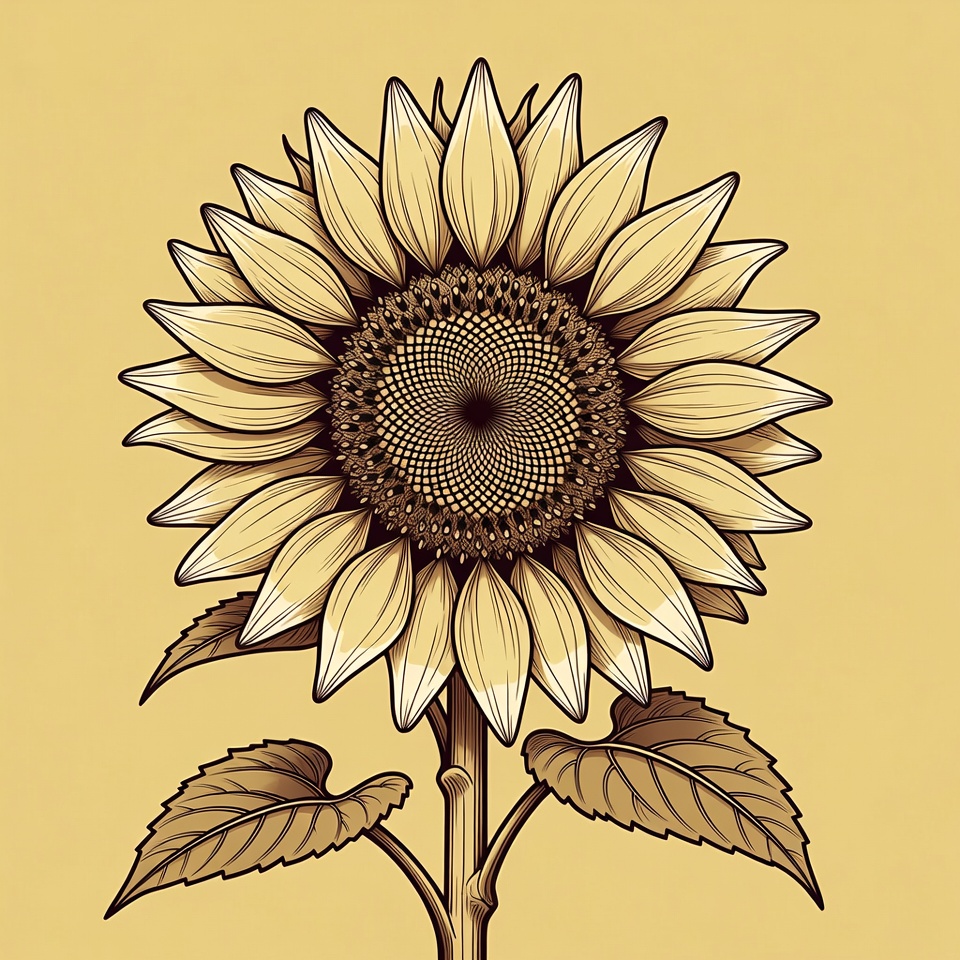 Illustrated Sunflower on Yellow Background