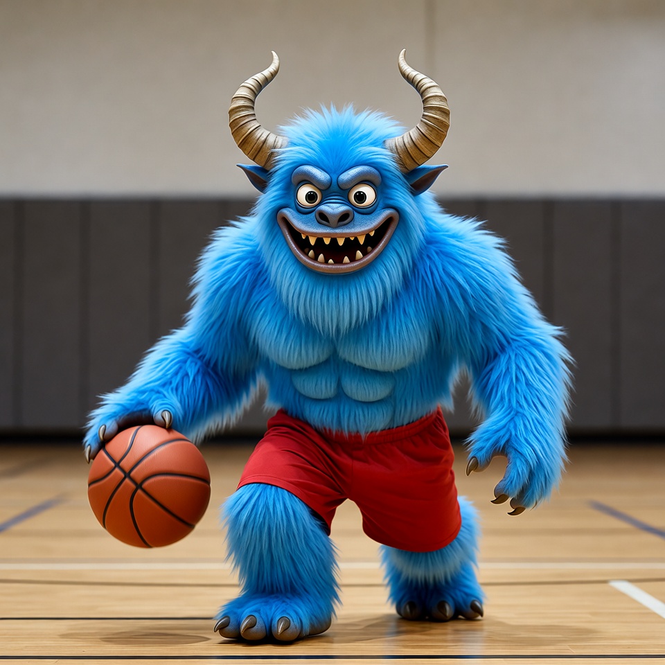Blue Yeti Monster Holding Basketball