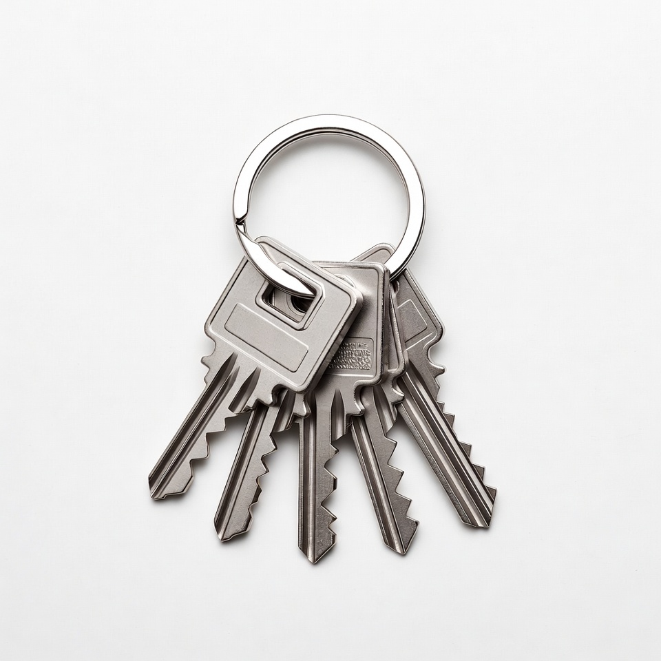 car keys, house keys, isolated background, key chain, key loop, key set, keyring, metal keys, multiple keys, shiny keys, silver keys, keys