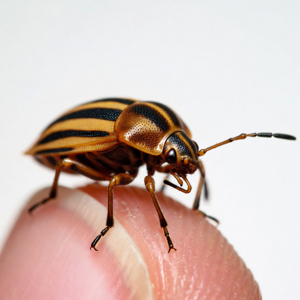 Striped Beetle on Human Finger