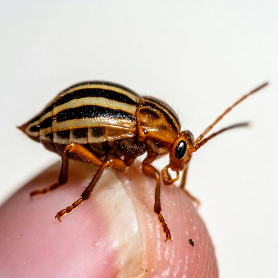 Striped Brown Beetle on Finger