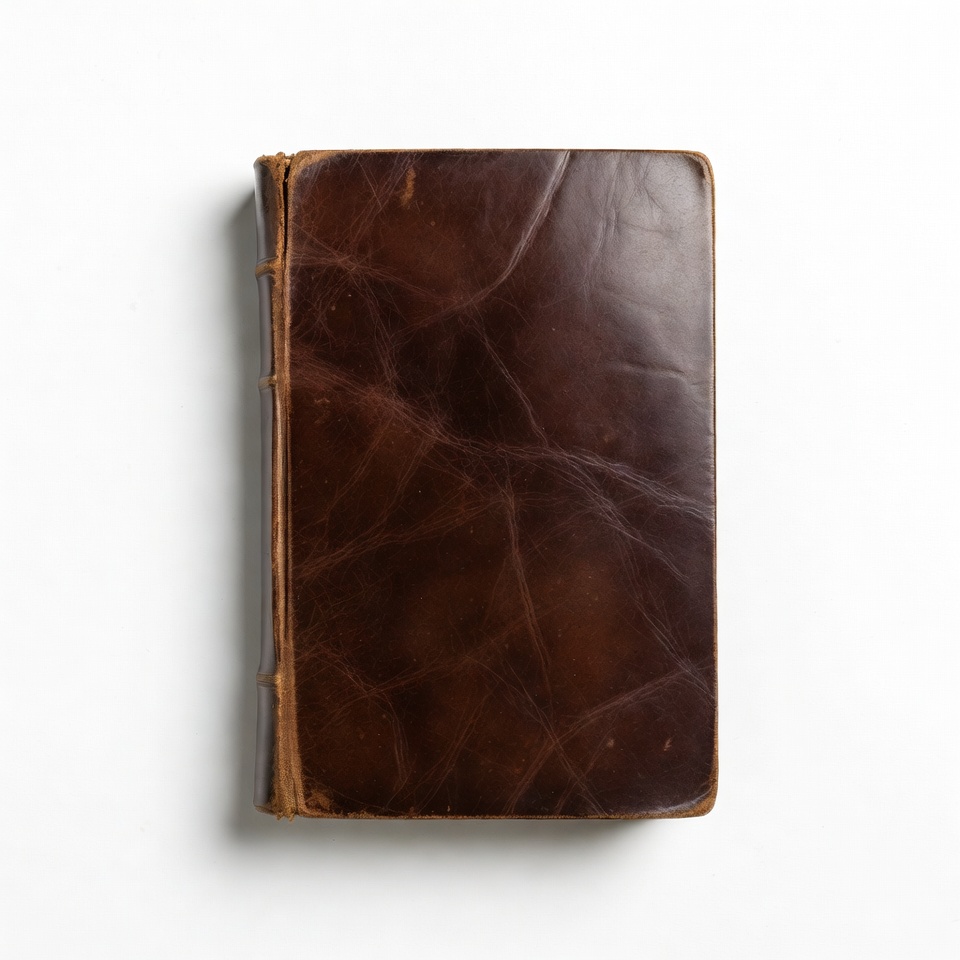 aged book, antique book, book cover, brown leather, closed book, hardcover book, isolated background, leather book, old book, white background, worn leather, vintage book