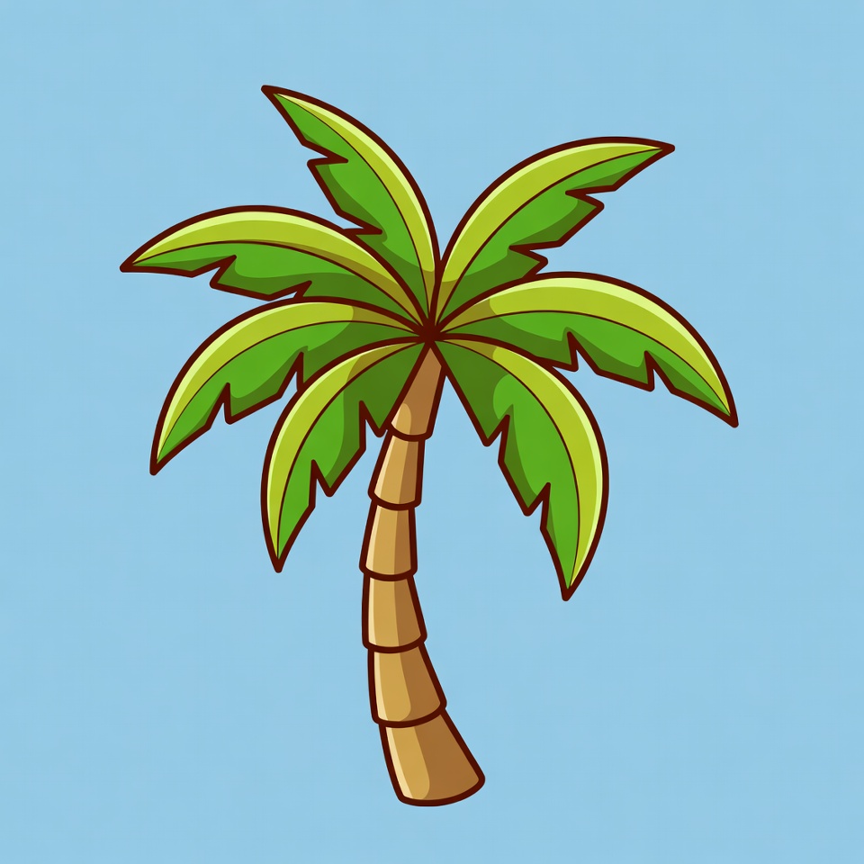 Cartoon Palm Tree on Blue Background