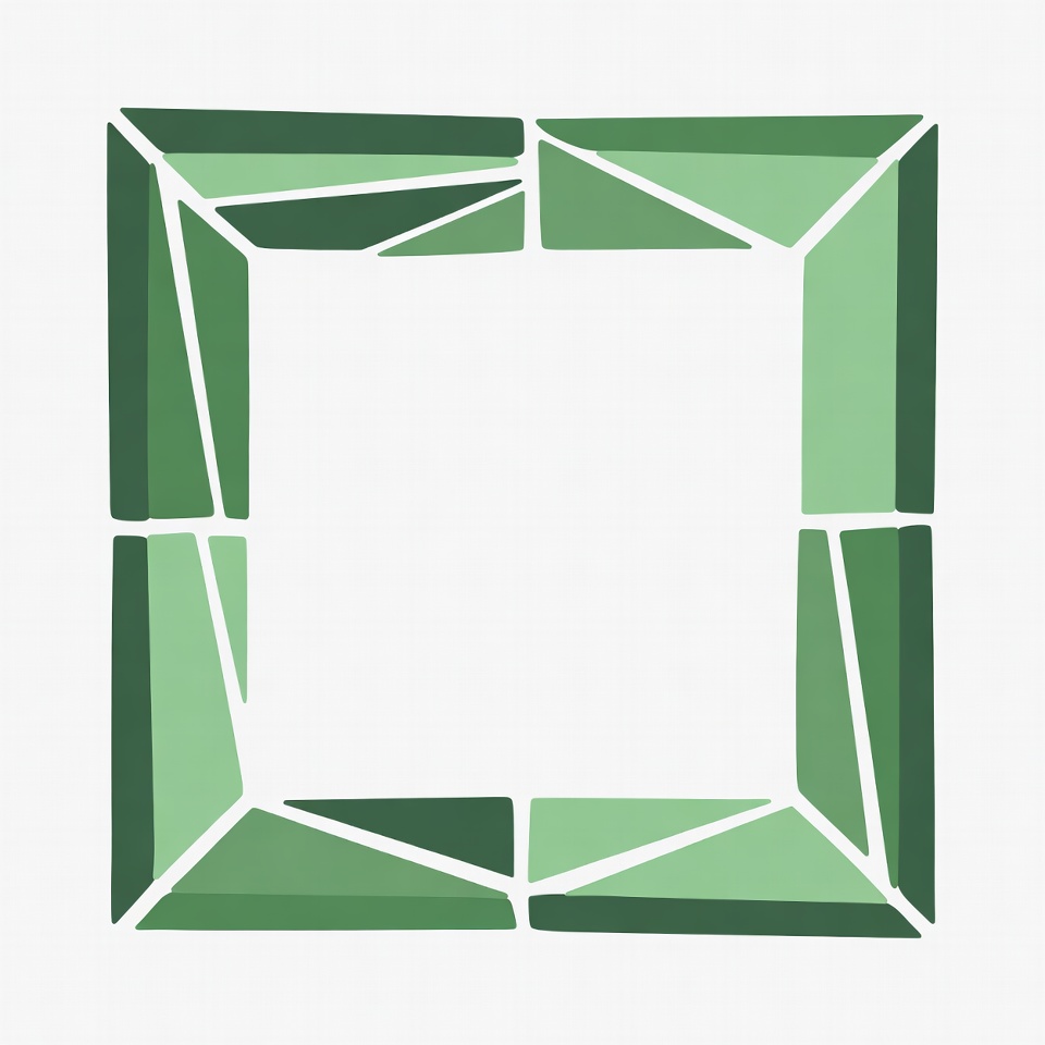 abstract frame, angular shapes, clipart, geometric design, geometric frame, green triangles, illustration, isolated background, polygonal frame, shaded green, square frame, triangle frame, vector art, green frame