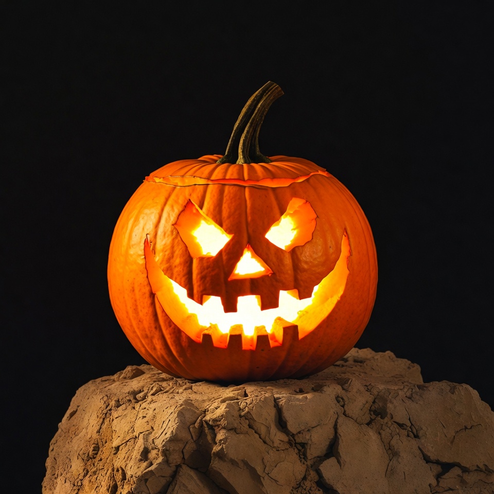Jack-o'-lantern on rocky surface
