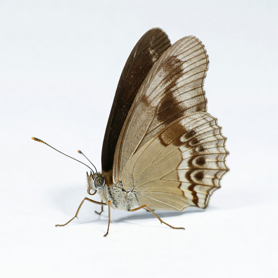antennae, brown butterfly, closeup, insect, isolated background, macro, nature, white background, white wings, wildlife, wings, butterfly