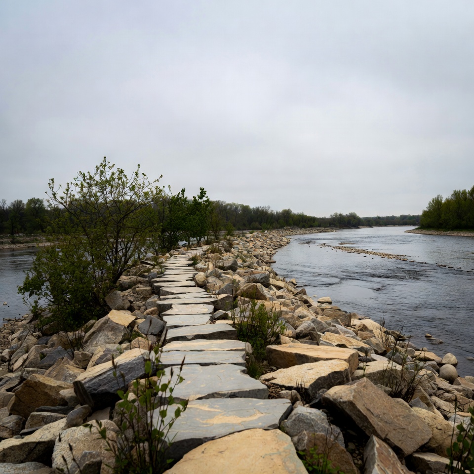 Stone Path Along River Riprap
