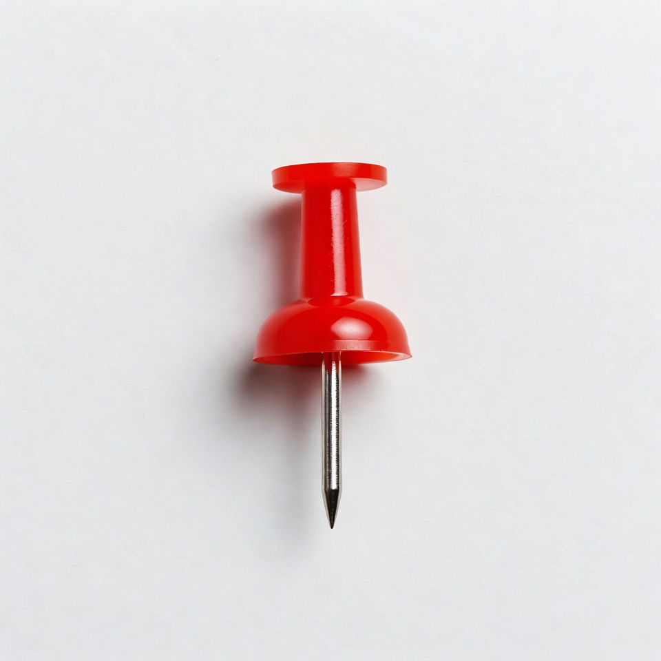 Red push pin on white background
