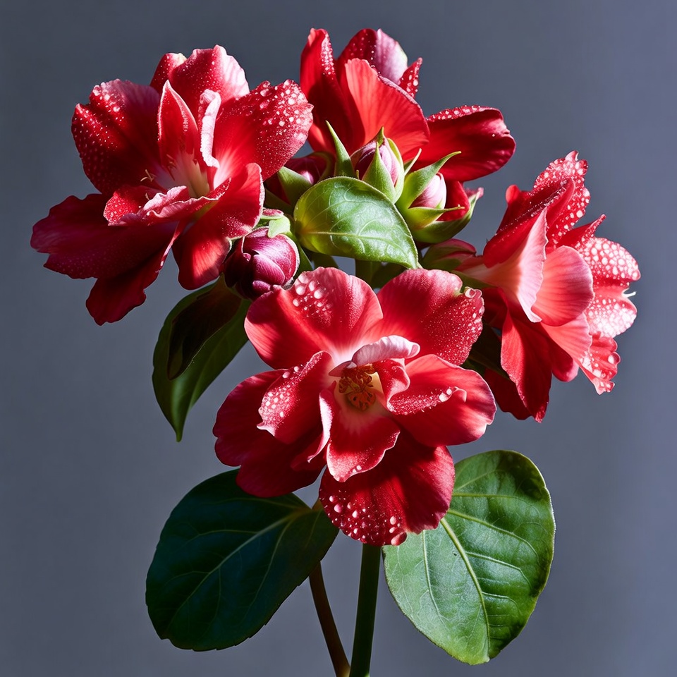 Red Hibiscus Flowers with Water Droplets