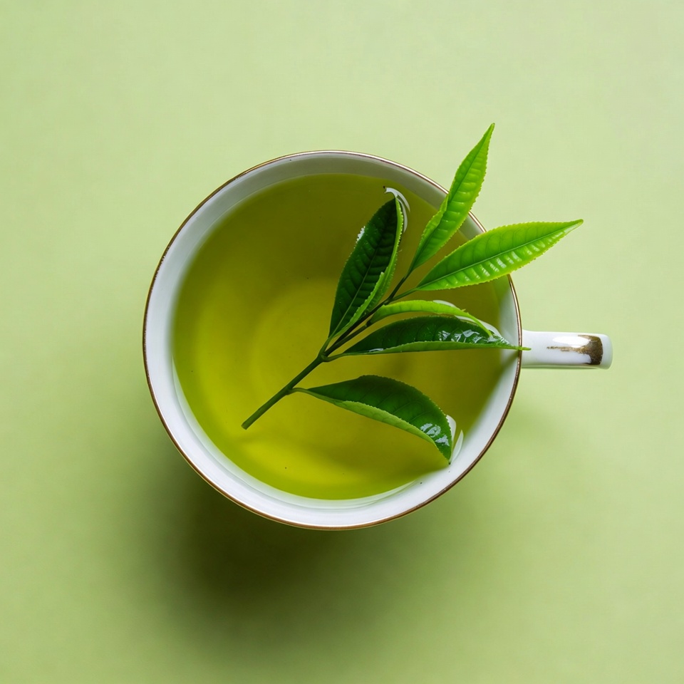 Green Tea in Cup with Leaves