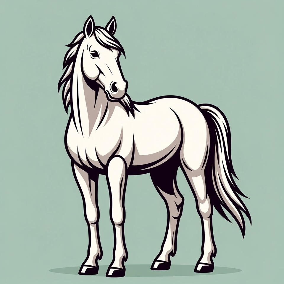animal, clipart, equine, green background, hooves, horse, illustration, isolated background, line art, mane, stallion, standing horse, tail, vector art, white horse