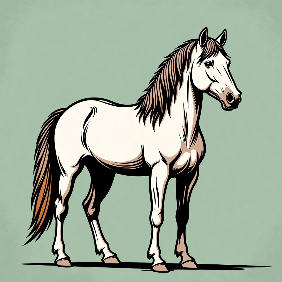 White horse illustration standing