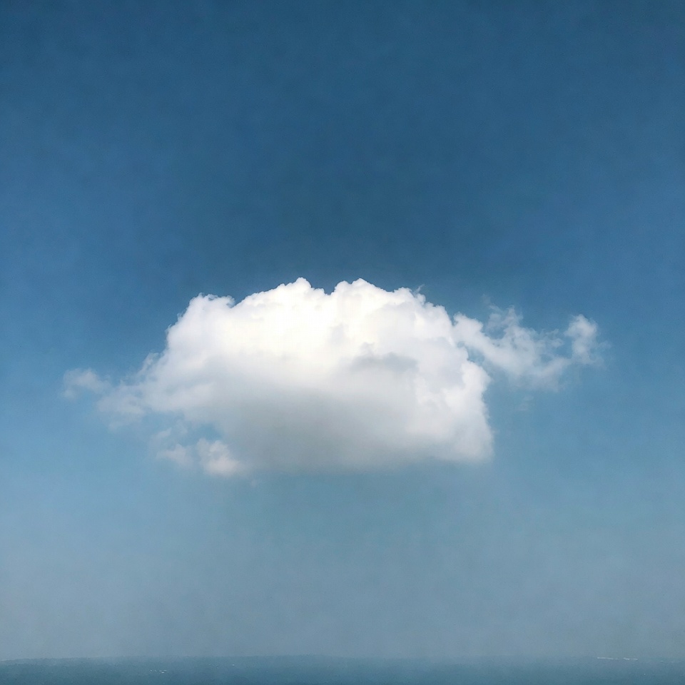 A single large fluffy white cloud floats against a clear blue sky. The cloud has soft, rounded edges and is centered in the frame. The background is a gradient of deep to light blue.