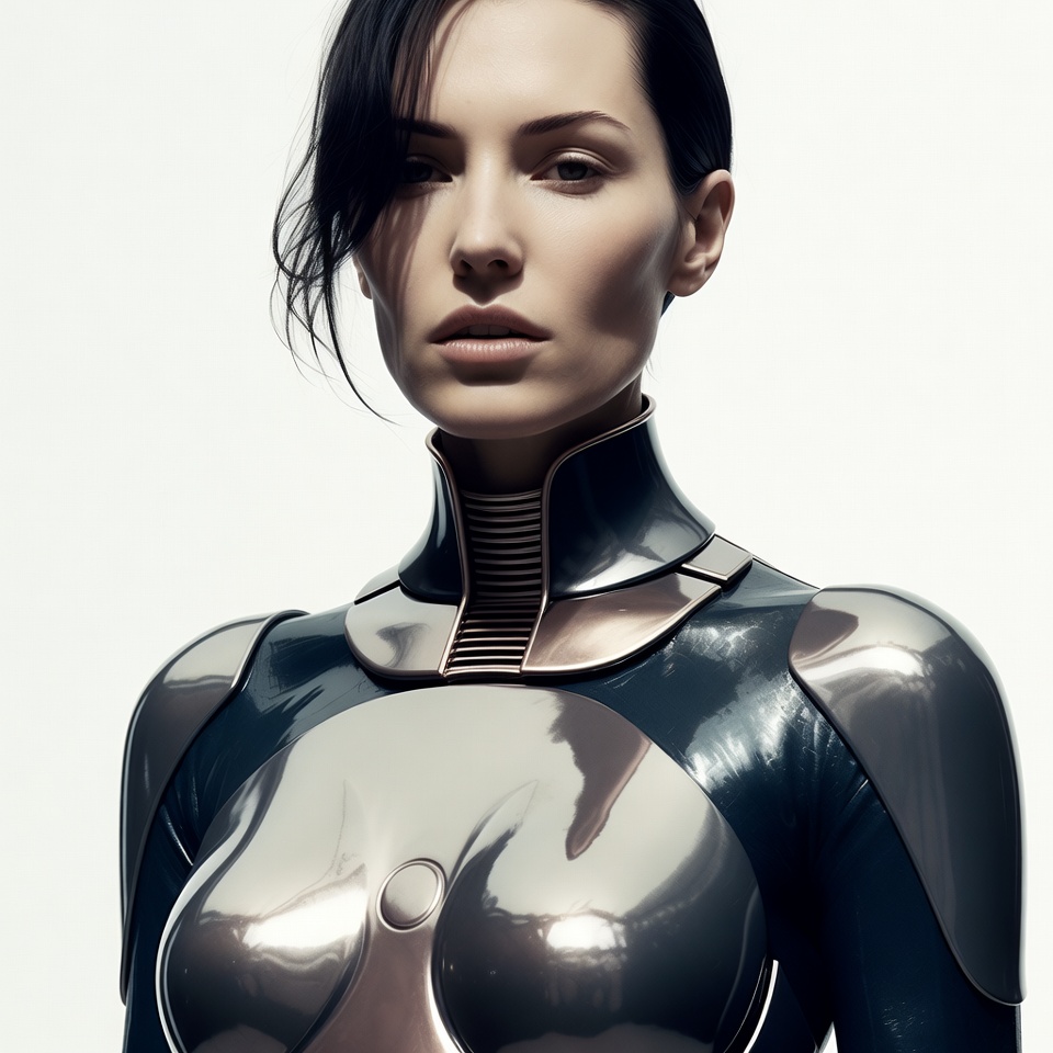 Futuristic woman in metallic armor