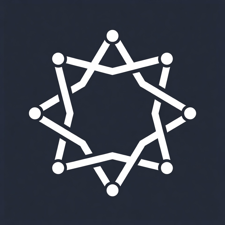 A minimalist white line drawing of a nine-pointed star on a dark navy background. The star is formed by interconnected lines with small dots at each of the nine points. It appears as a simple geometric illustration.