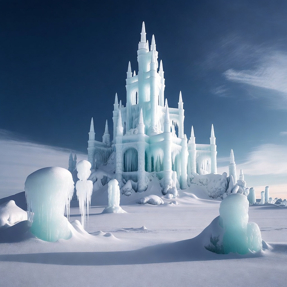 Ice Castle in Snowy Landscape