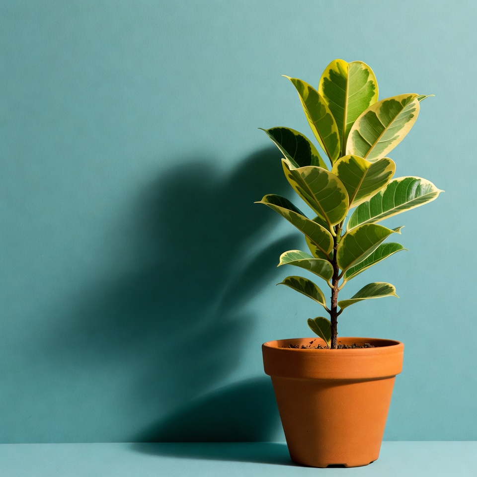 Variegated Ficus Plant in Terracotta Pot