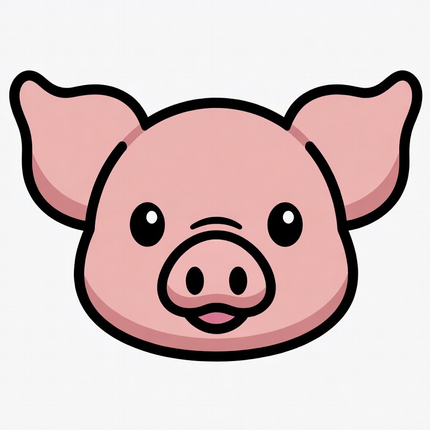 adorable pig, animal, big eyes, cartoon pig, clipart, cute pig, farm animal, illustration, isolated background, kawaii, pig face, piggy, pink pig, smiling pig, pig
