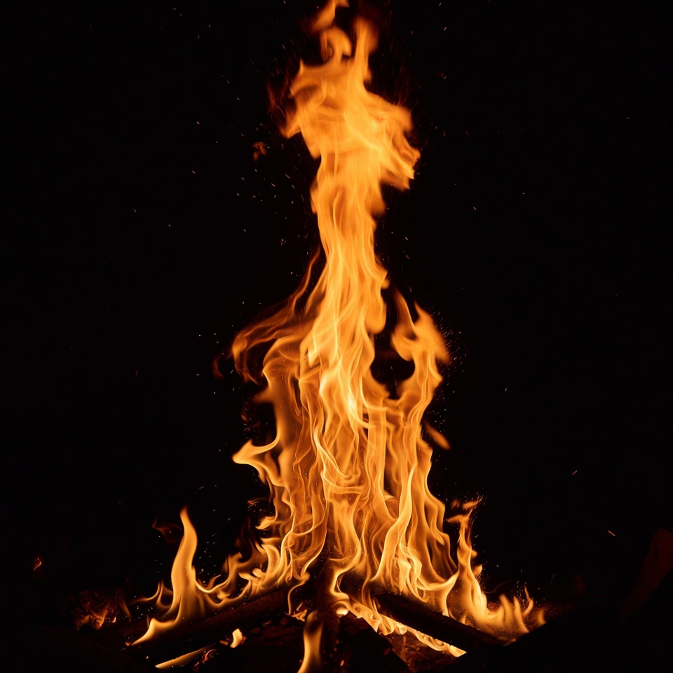 black background, blaze, bonfire, burning, campfire, combustion, dark backdrop, embers, fiery, flame patterns, flames, glow, heat, inferno, isolated background, orange flames, sparks, wood logs, yellow fire, fire