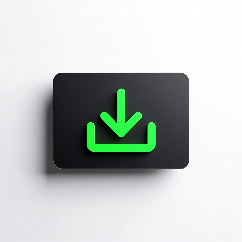 3D icon, UI icon, app button, arrow down, black button, digital download, download arrow, download icon, download symbol, glossy icon, graphic design, green arrow, green button, isolated background, mobile icon, neon green, rectangular button, shadow effect, software button, vector icon, web icon, download button