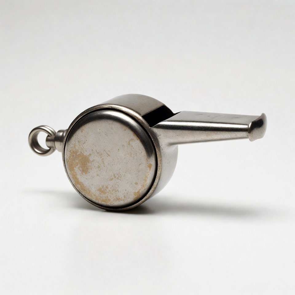 chain, coach whistle, isolated background, metal whistle, metallic, mouthpiece, pea whistle, referee whistle, round whistle, silver whistle, sports whistle, vintage whistle, white background, whistle