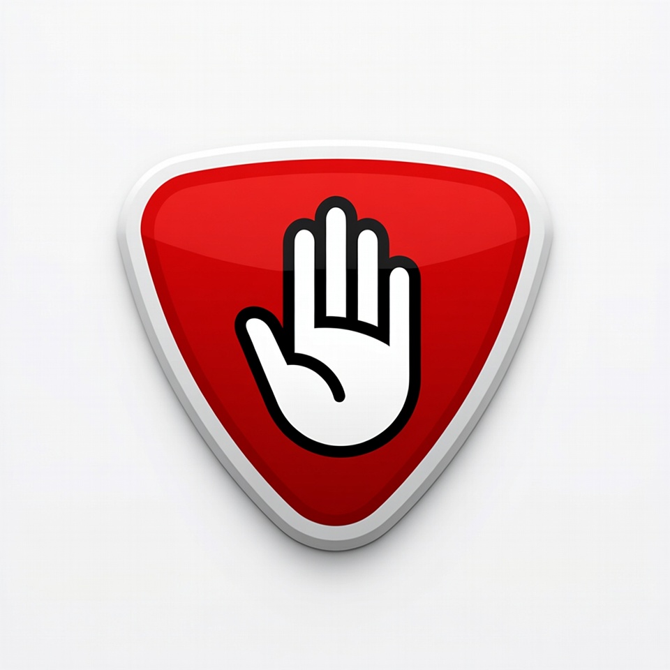 badge icon, clipart, forbidden, glossy red, hand icon, illustration, isolated background, no entry, palm forward, prohibition symbol, red triangle, stop sign, vector graphic, white hand, stop hand
