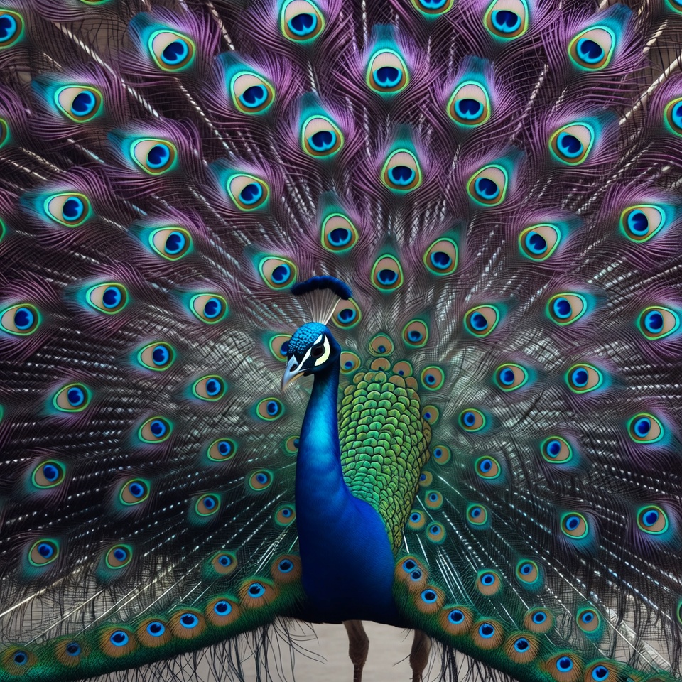 Peacock displaying vibrant tail feathers