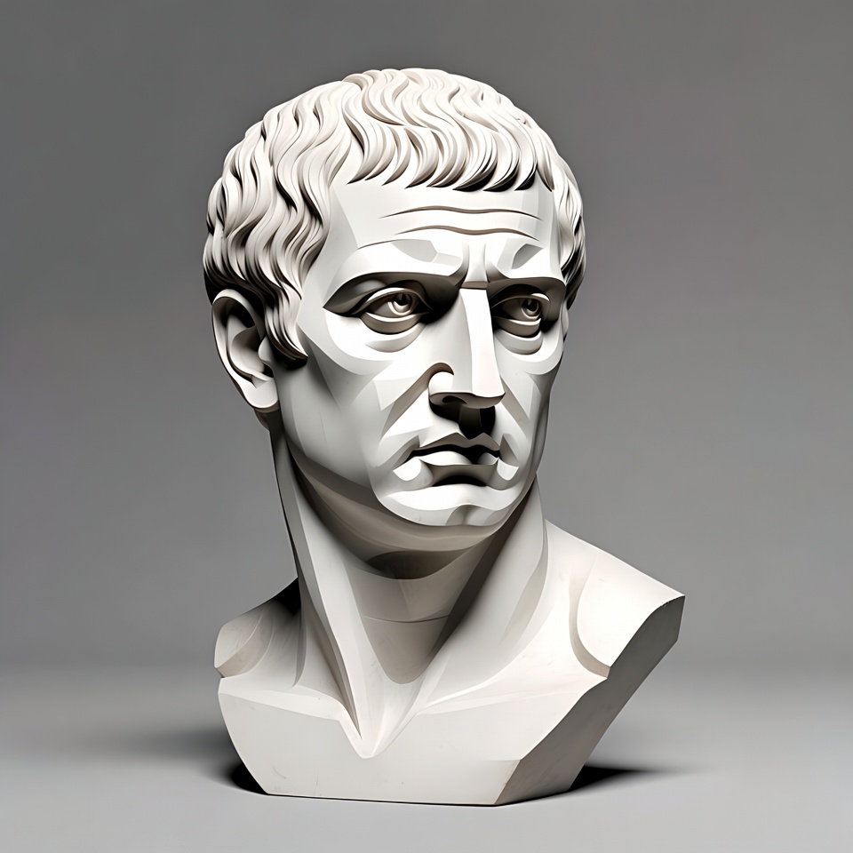 3D render, Roman man, White, ancient Rome, classical sculpture, curly hair, historical figure, isolated background, male portrait, man, marble bust, sculpture, stern face, white statue, bust